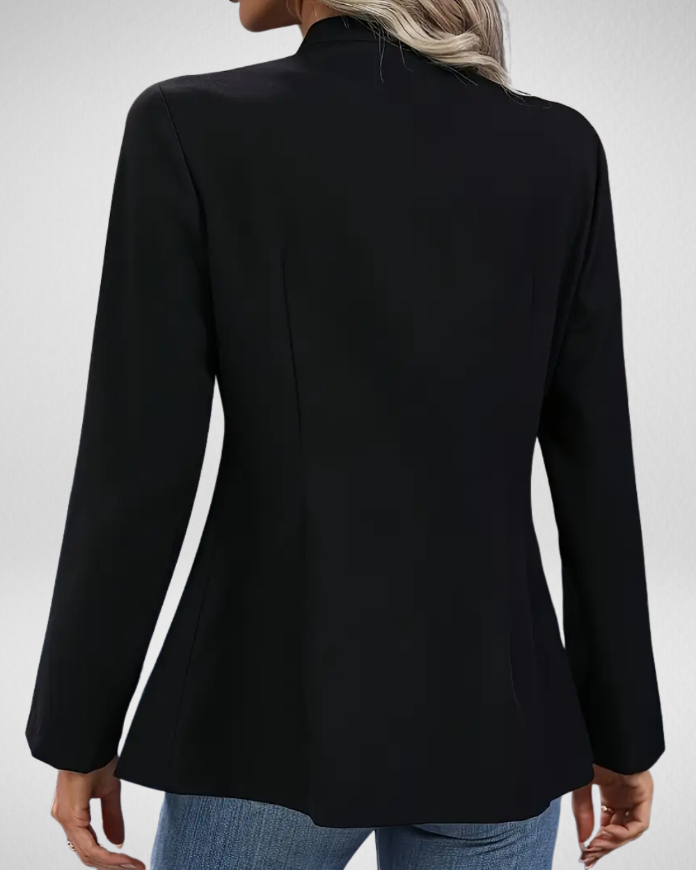 ノーカラーデザイン:デコルテをすっきり見せる、洗練されたシルエット。